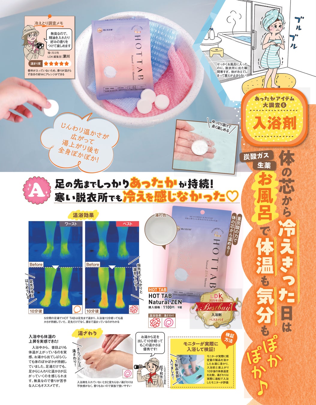 この度、『HOT TAB Natural ZEN SHOWER』がテストする女性誌「LDK」2025年1月号(11月28日発売)の【あったかアイテム大調査隊】入浴剤部門において、ベストバイ及び第1位を受賞いたしました。