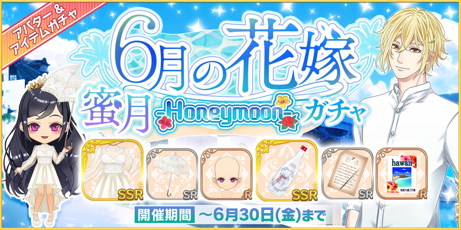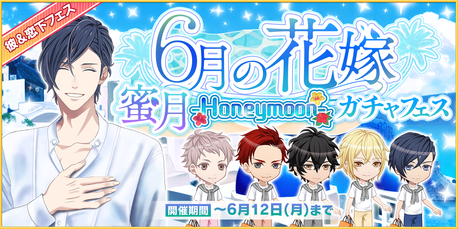 6月の花嫁~密月~イベント限定の彼アバターが新登場!甘~いハネムーンに浮かれているバカンス姿の彼等をGETできるのは今しかない♪