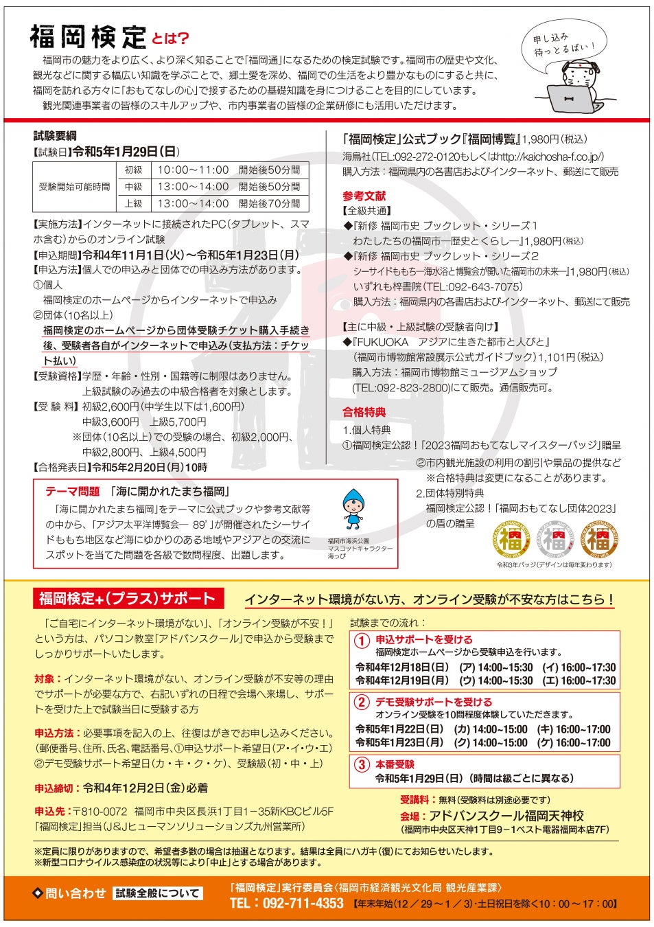 皆さまの挑戦をお待ちしております。(合格者には福岡観光で役に立つ施設割引特典あり!)