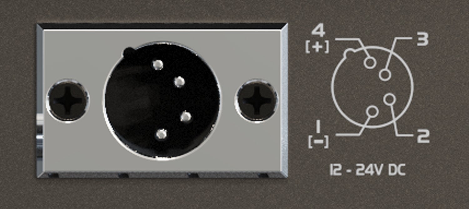 市販のVマウントバッテリープレートを装着するネジ穴を本体背面に装備。バッテリープレートから4ピンXLRコネクタへ電源ケーブルを接続する事でバッテリー駆動での使用が可能となります。