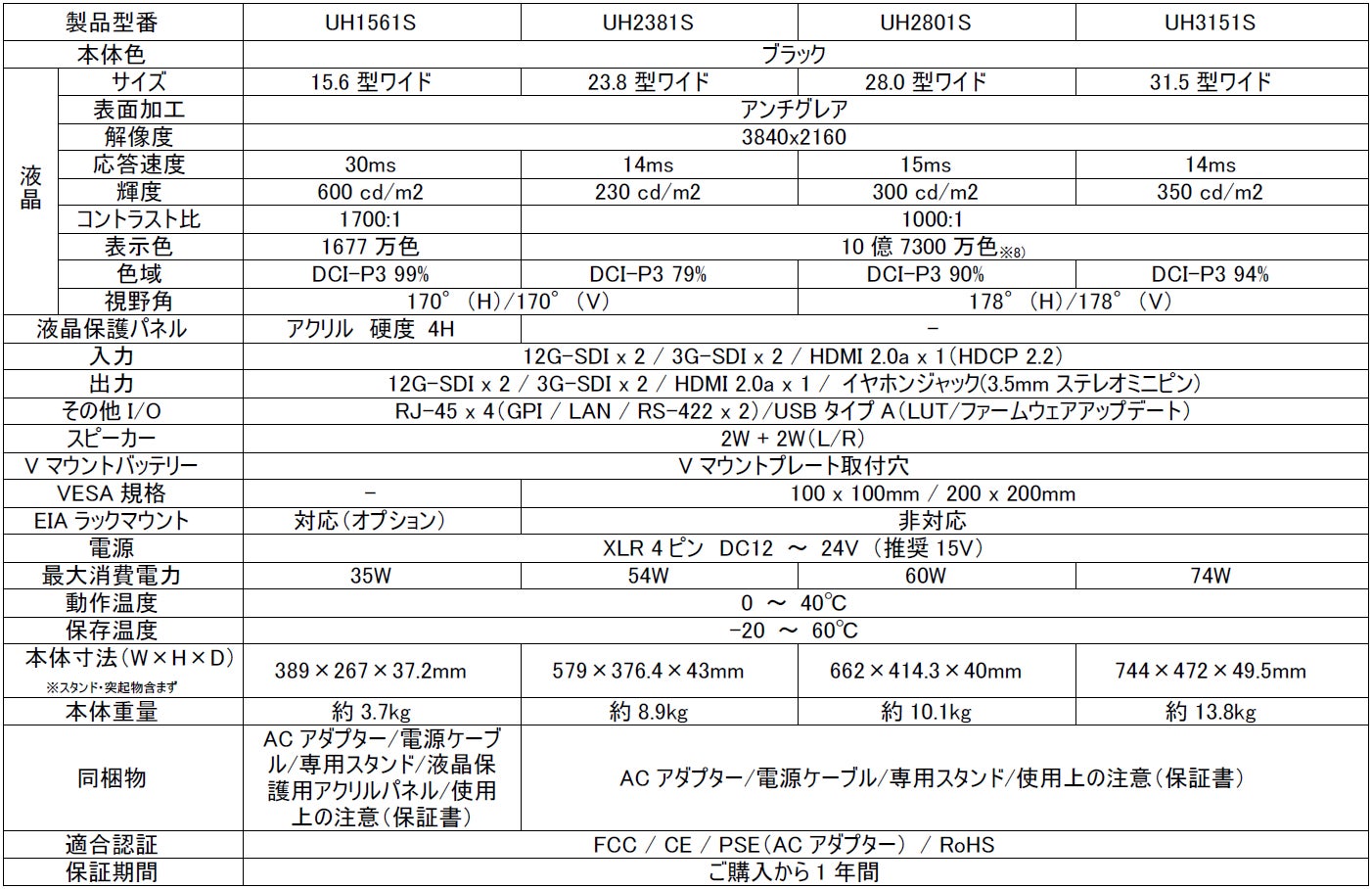 15.6型[型番:UH1561S]/23.8型[型番:UH2381S]/28型[型番:UH2801S]/31.5型[型番:UH3151S