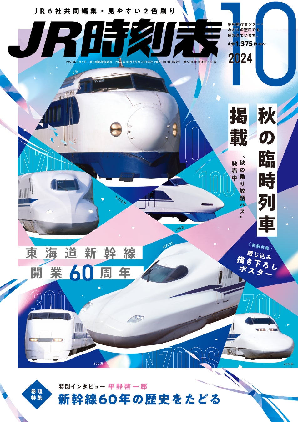 【東海道新幹線60周年記念】『JR時刻表』10月号(9/20発売)の巻頭特集は特別バージョン「新幹線60年の歴史をたどる」+描き下ろしポスター付き!