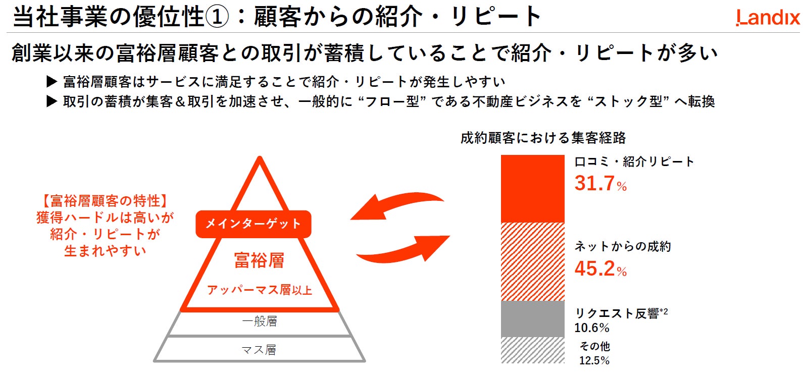 特徴:富裕層のお客様が中心で、成約のうち紹介・リピートが30%以上