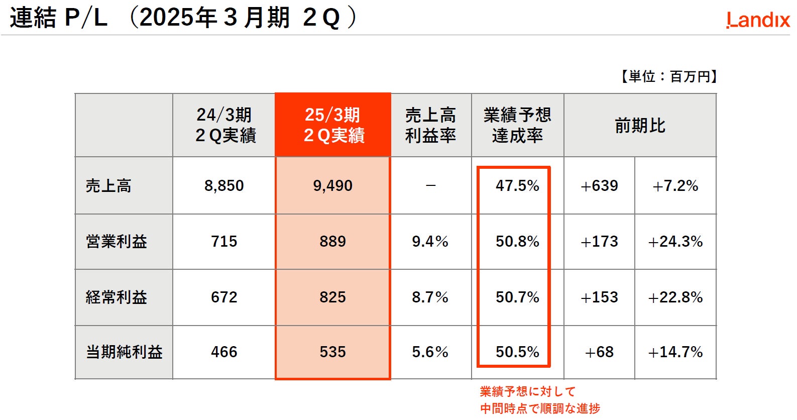 売上高進捗率47.5%、経常利益進捗率50.7%で、中間地点において順調な折り返しとなりました。