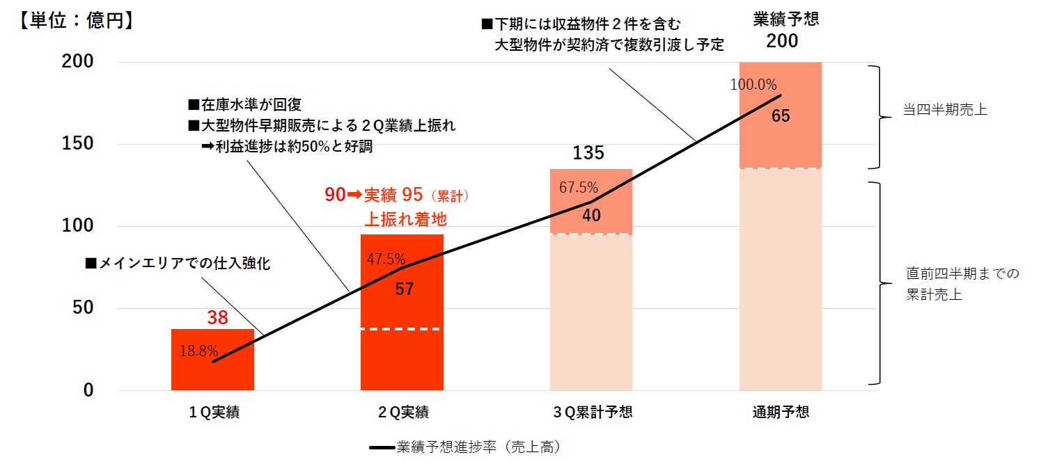 1Q段階では、前期仕入れにおいて利益率が低下していた在庫販売があった影響で利益水準が低下していましたが、2Qでは今期の目標利益水準を回復し、今期業績予想達成確度が高まりました。