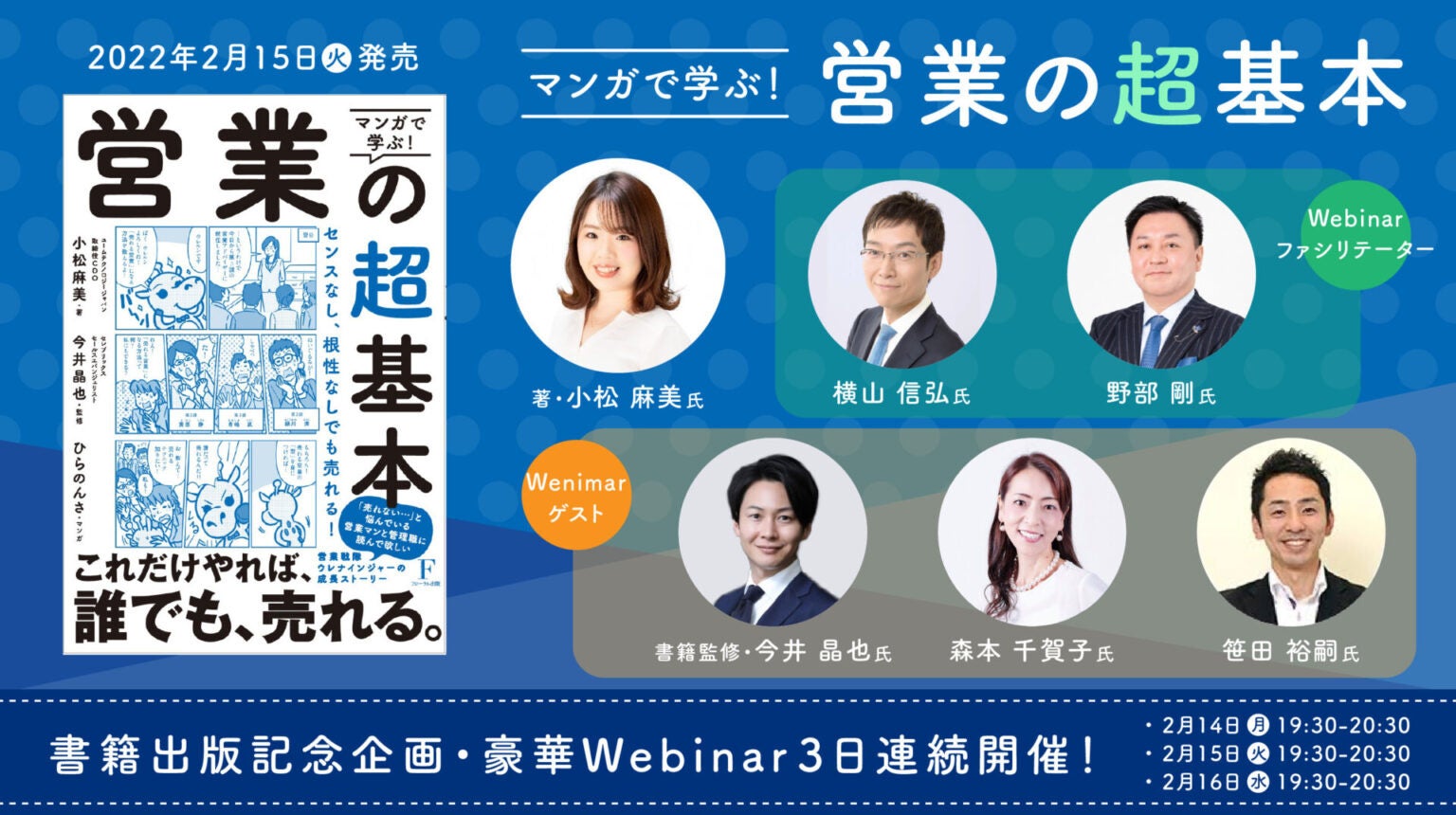 2月15日(火)にフローラル出版より『センスなし、根性なしでも売れる!マンガで学ぶ!営業の超基本』が出版されることを記念したイベントです。誰もがご存知の営業界のレジェンドを集めたイベントを3日連続でお送りいたします。