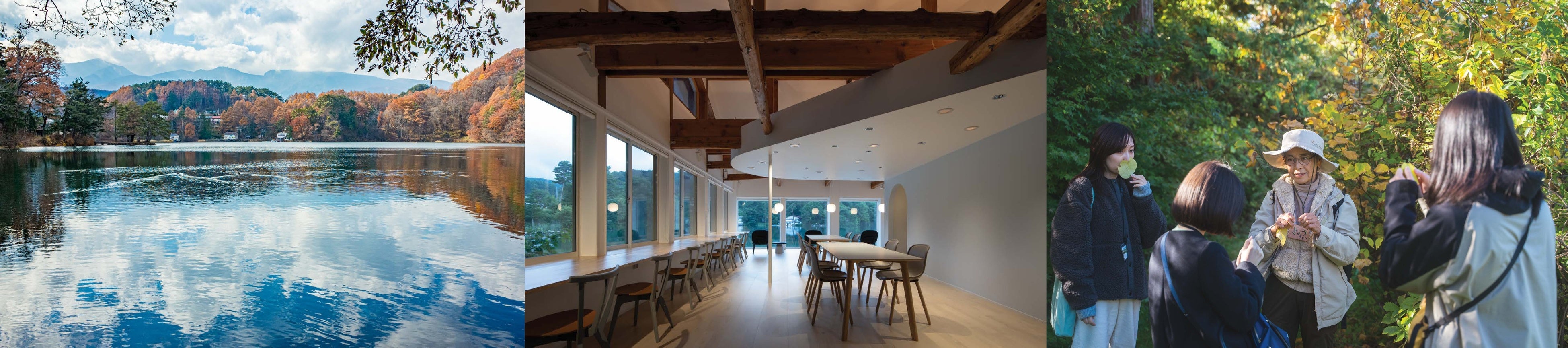 憩うまちこうみ事業では、小海町の豊かな資源を生かした「Re・Designセラピープログラム」を核として、働き方改革や健康経営に関心を持つ都心部の企業にむけた独自のヘルスツーリズムプラン提案をしています。2020年には、企業のリモートワークを後押しする拠点施設が松原湖畔に整備され、2023年12月現在、25社の企業と提携し、地方×健康経営の可能性を切り拓く地域として注目を集めています。
