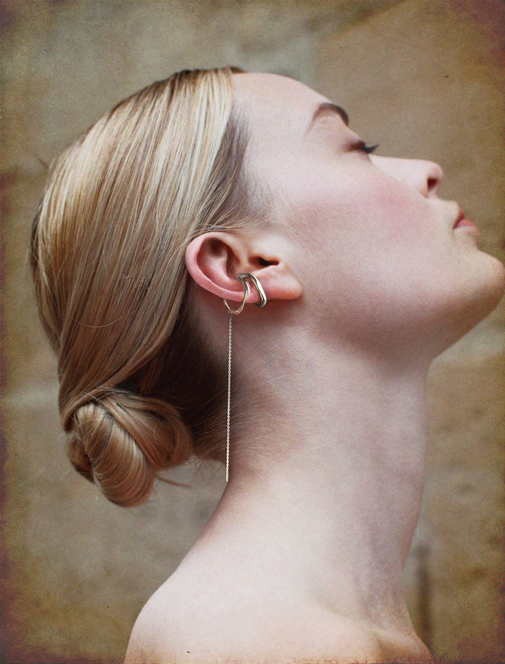 王宮の舞踏会でも愛されたワルツから着想を得て、貴族のふわりと揺れるドレスの裾をイメージし、流れるようなシェープとチェーンが 一番美しく見える角度を意識して緻密に計算されたデザインです。動くたびに軽やかに揺れ、優雅な印象を与えます。