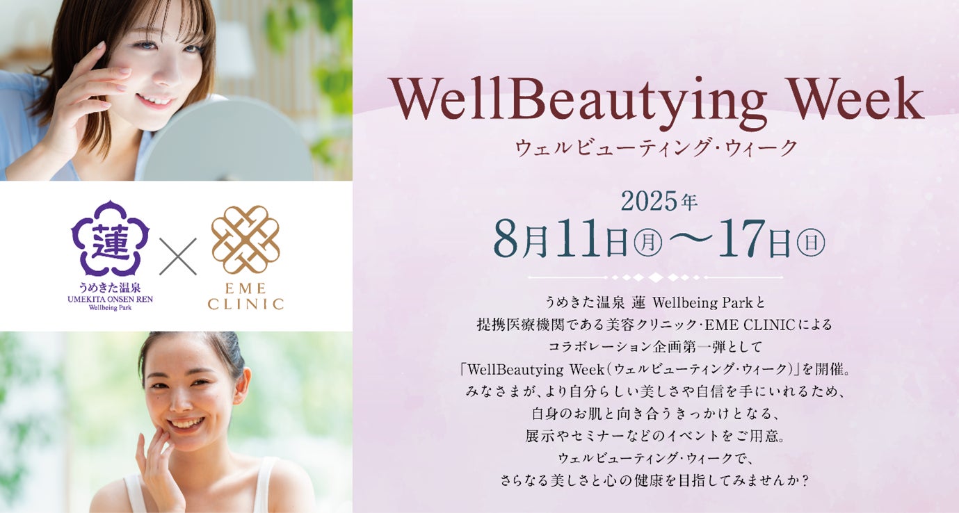 本イベントは、2025年8月11日(月)~17日(日)に、うめきた温泉 蓮 Wellbeing Park内にて実施され、「美」によって自信を持ち、身体だけでなくこころのWellbeingを目指すことを目的としています。