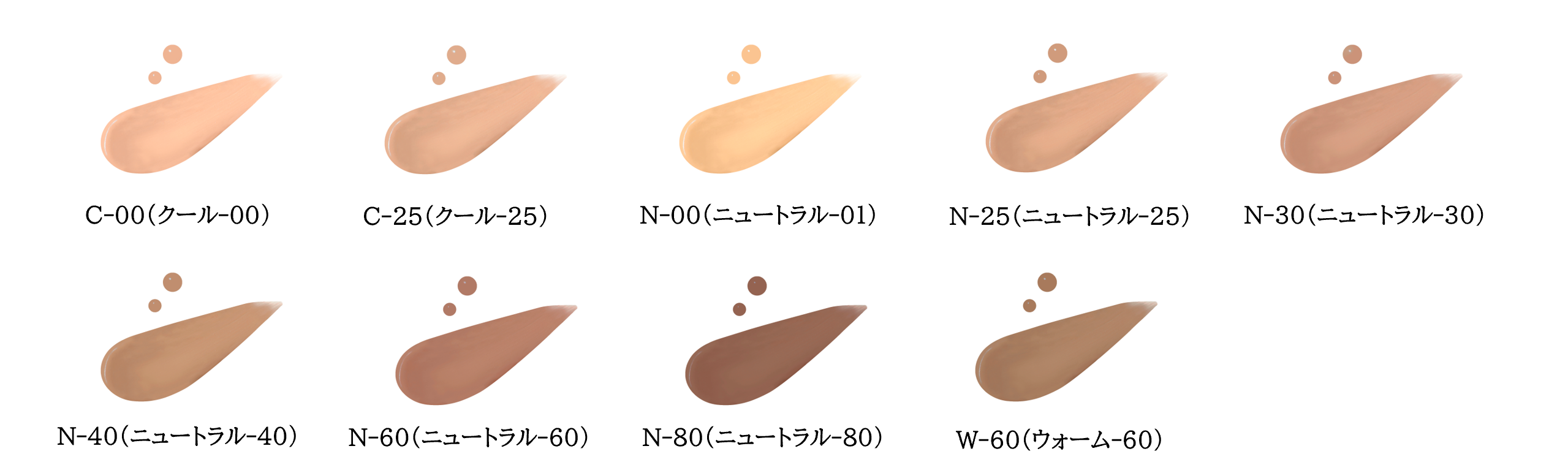 今回、追加された9色は黄みよりの中間色だけでなく、明るさ、色調の幅を持たせることで、自分の色に出会えるバリエーションを展開しています。ピンクベースの色味で透明感あふれる仕上がりから、イエローベースの色味で健康的ないきいきとした仕上がりまで、なりたい肌の色を叶える新色9色。