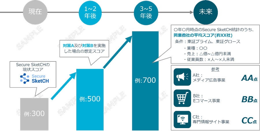図1:Secure SketCHの統計データを用いたセキュリティ対策の目標値(スコア)設定のイメージ