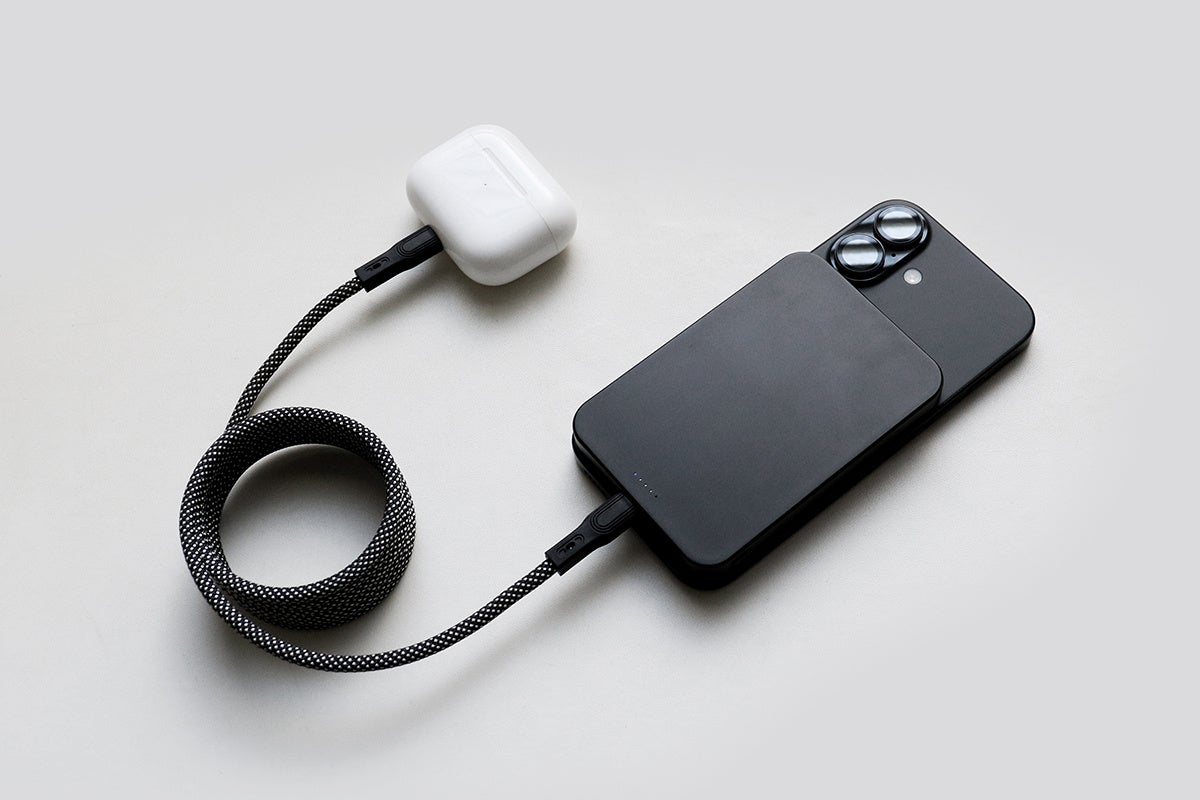 Qi2のマグネット式ワイヤレス充電に加え、Type-Cポートを使って充電することもできます。別途ケーブルを用意すれば、2台の機器を同時に充電できます。