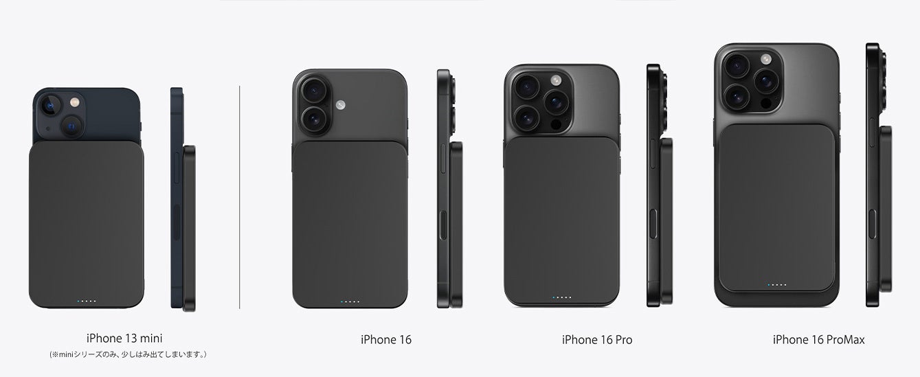 iPhone 13 シリーズ以降の大きなカメラレンズにも、接触せずに吸着させることができます。