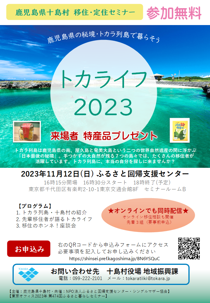【主催:鹿児島県十島村・共催:NPO法人ふるさと回帰支援センター・シングルマザー協会】