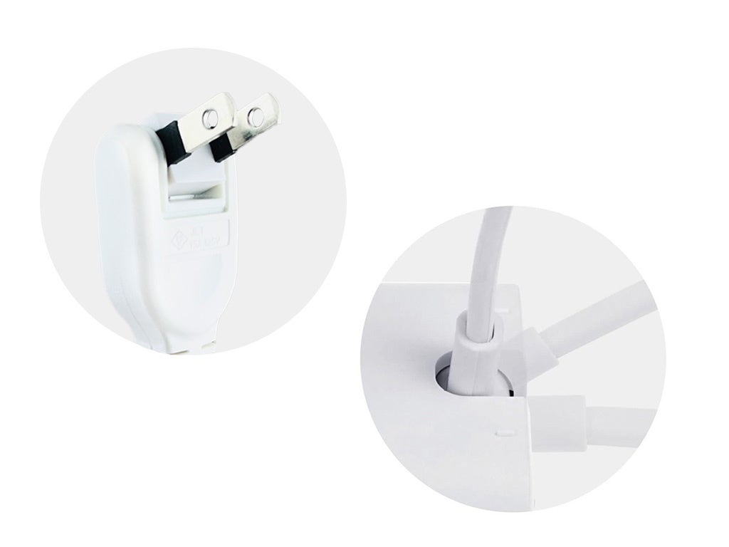 本体接続のコードおよびコンセントプラグの先端はスイング式となっており、設置しやすい構造となっています。
