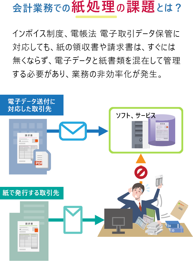 2023年は、10月1日に「インボイス制度」施行、12月31日に「電帳法電子取引データ」の印刷による保存の宥恕措置終了を控えており、企業・個人事業主の皆様の準備は進みつつあり、制度に対応するソフトやサービスの新規導入、アップグレードが進み、情報のデジタル化が加速されています。しかし、実際の商取引きでは、紙の領収書や適格請求書などが、まだまだ残るのが実態と予測されます。