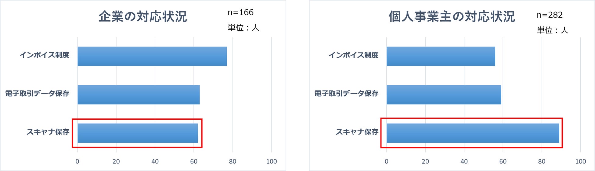 ・調査内容:「インボイス制度」、「電帳法」の対応状況、意識調査、会計業務でのスキャナー活用状況