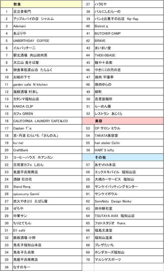 70店舗の事業者に協賛していただいています。(詳細 3ページ目)