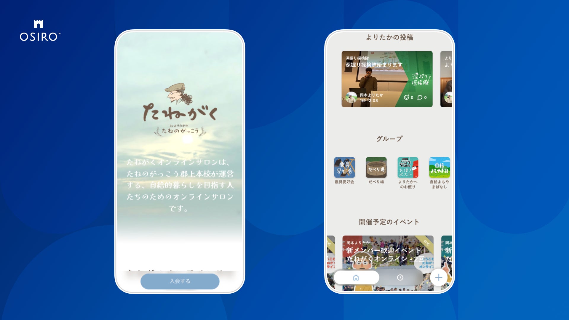 これらの思いを叶えるため、この度オシロ社が提供するコミュニティ専用オウンドプラットフォーム「OSIRO」を導入いただきました。これにより、無肥料栽培や自給農などをはじめとした自給的な暮らしを学びたいという共通の思いを持つメンバー同士がつながり、高め合うことで、無肥料栽培の拡大や自給農の定着化を図ります。