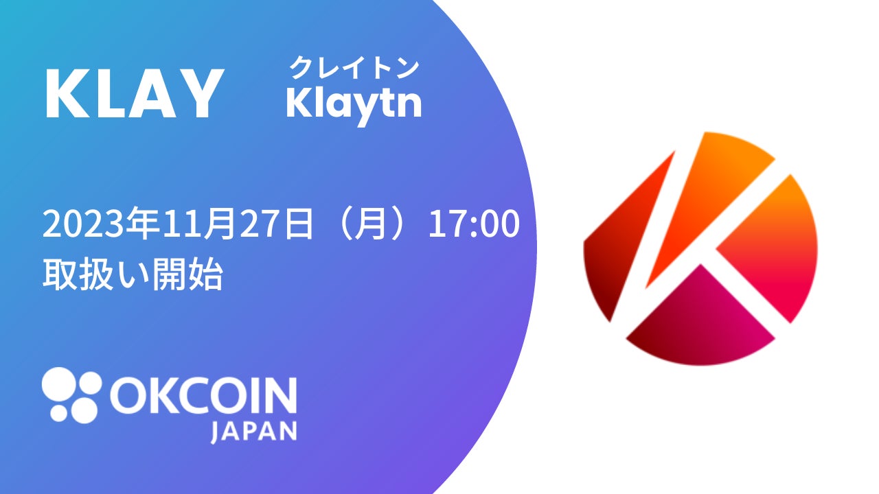 当社は、OKCoinJapan(暗号資産取引所)にて、『クレイトン(KLAY)』を2023年11月27日(月)に取扱い開始することをお知らせいたします。これにより、OKCoinJapanは34種類の暗号資産を取扱うこととなります。