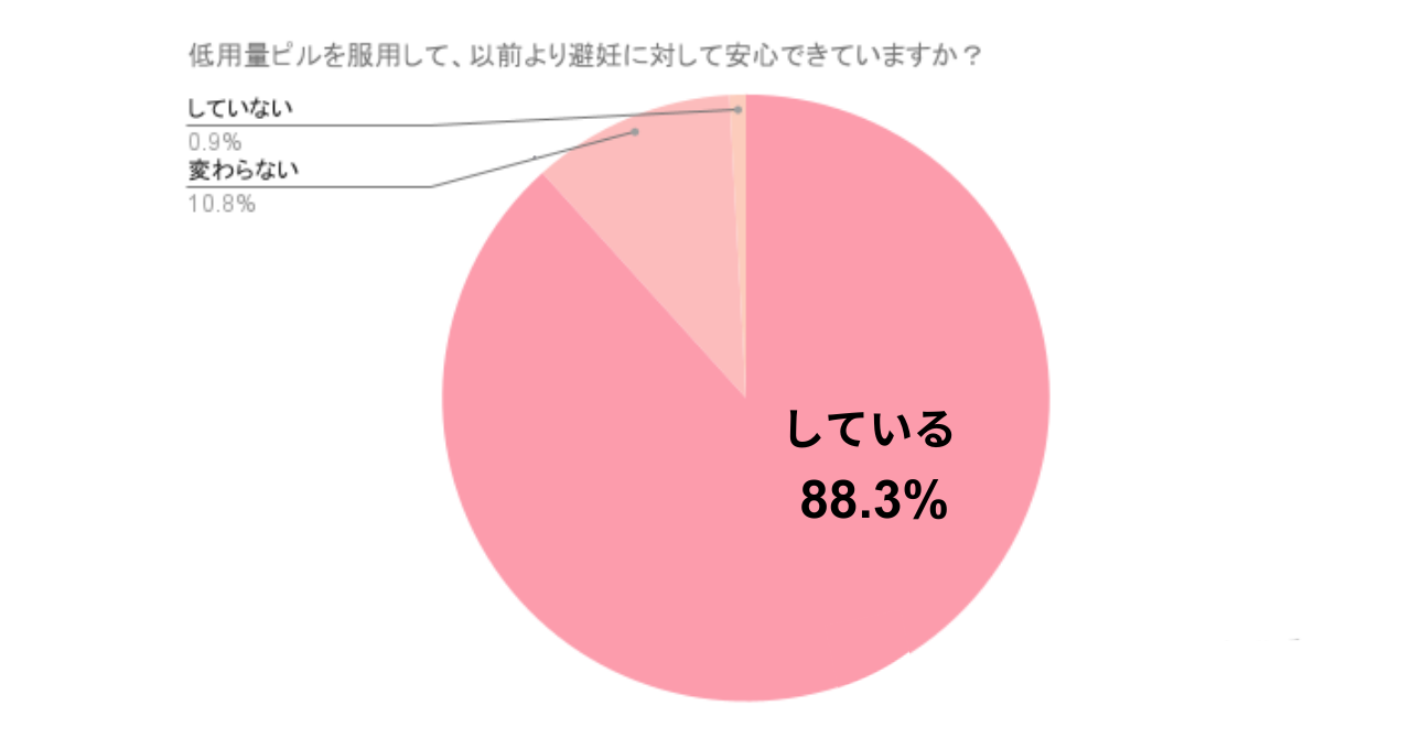 一方で低用量ピルを服用後に、以前より避妊に対して安心できている方は約88%。