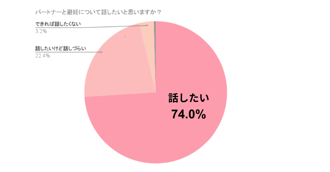 「パートナーと避妊について話したいと思いますか?」という項目については、「話したい」と回答した方は約74%。一方で、「話したいけど話しづらい(22.4%)」と感じる方も2割以上を占めるなど、パートナー間で避妊に関するコミュニケーションに課題を抱えている層も一定数存在します。