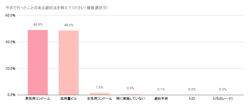 今まで行ったことのある避妊法を教えてください(複数選択可)