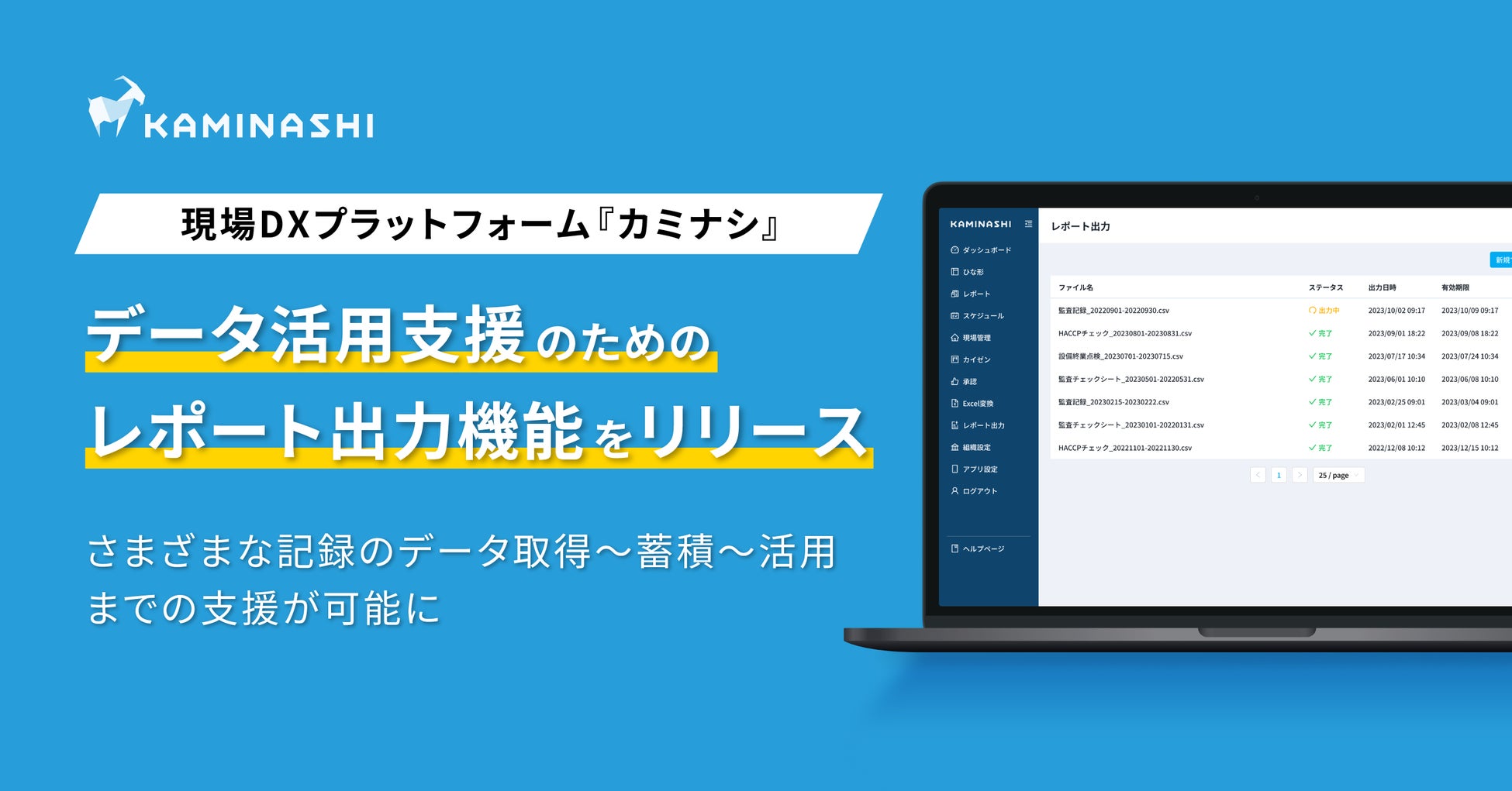 現場DXプラットフォーム『カミナシ』、データ活用支援のためのレポート出力機能をリリース