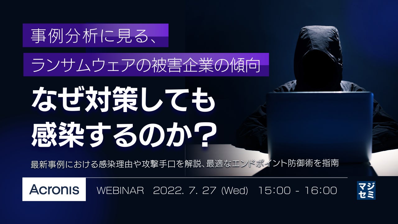 ・本セミナーは、2022年6月23日に開催したセミナー「最新の被害事例が示す、今どきのランサムウェア事情 対策しても感染するのはなぜ?」と同じ講演内容を含んでおります。多数のご要望により、追加開催させていただきます。
