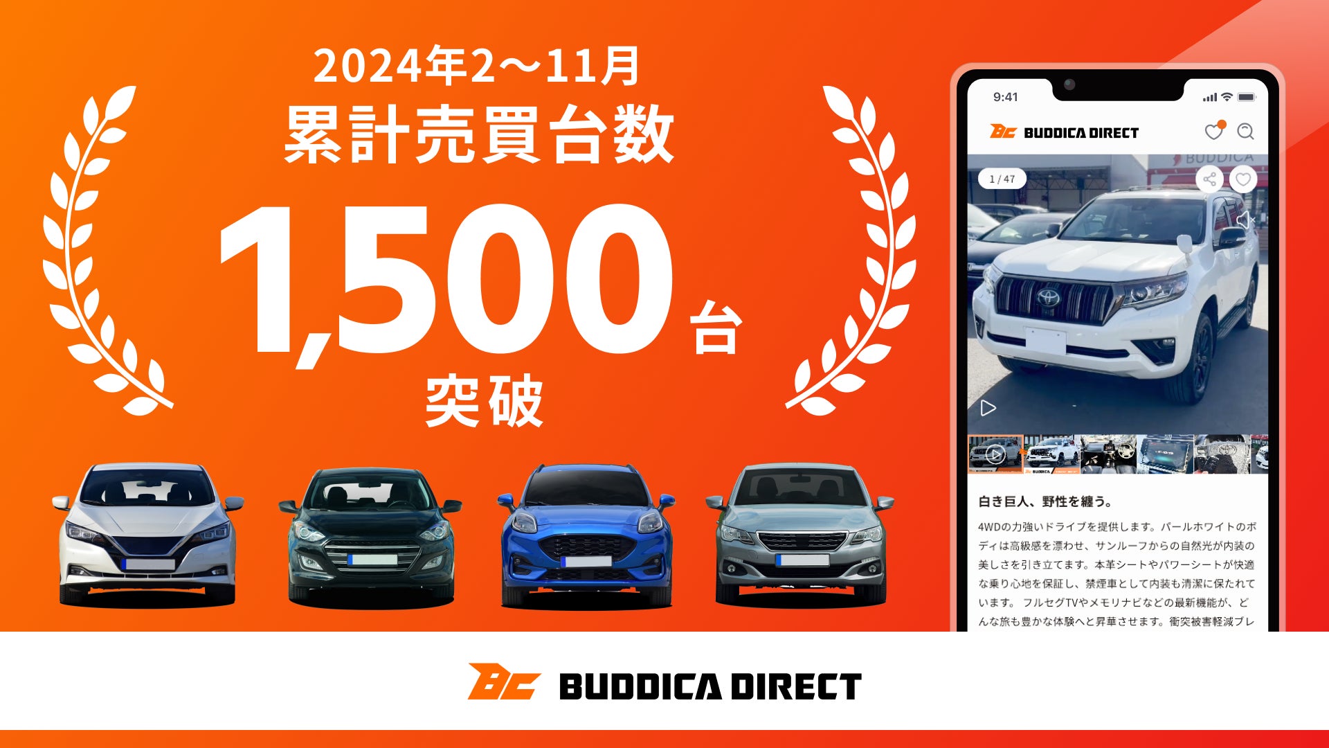 2024 年11月時点での累計売買台数1,500台突破はあくまでも通過点にしか過ぎません。もっと多くのお客さまに「愛車のある生活」を喜んでいただきたいと考えております。バディカダイレクトはお客さまとの信頼のある関係性がすべてです。そのため今後も「透明性」のある企業スタイルを継承してまいります。