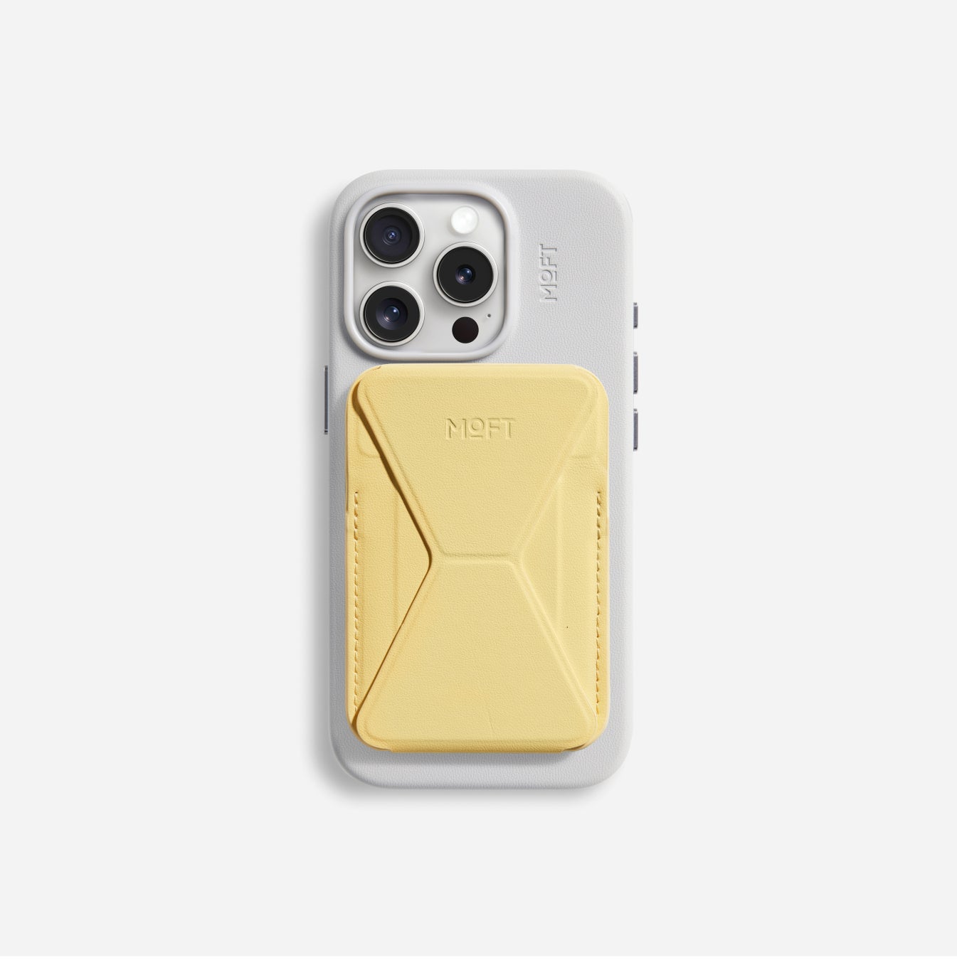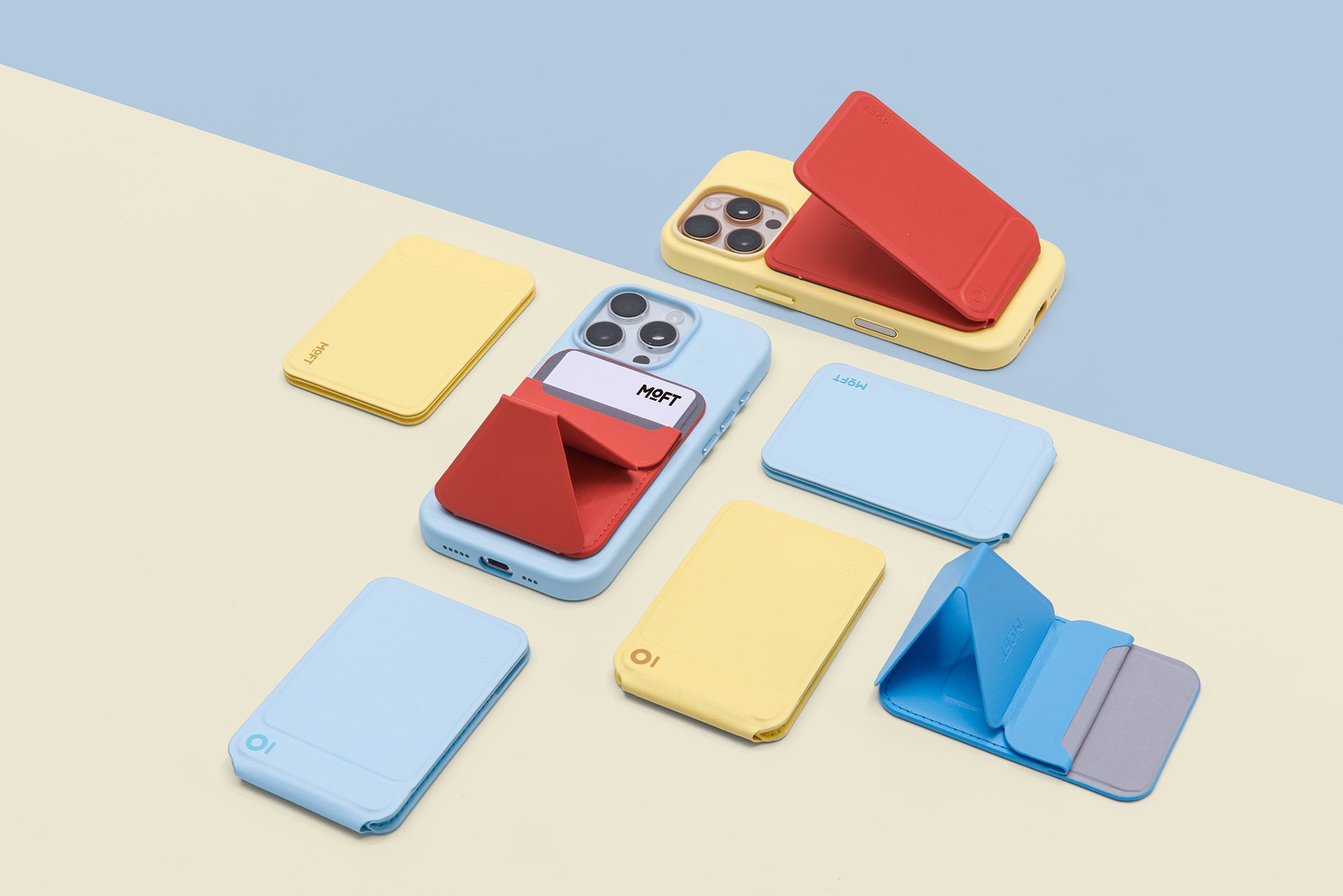 プリンイエロー、ミストブルーの2色が登場。「MOFT 七変化マルチスタンド - MagSafe対応」にカードホルダーの機能が追加されています。NFCカード対応のため、交通系ICカードに加え、タッチ決済対応のクレジットカードやカードキーも、本体ごとタッチするだけでご利用可能です。