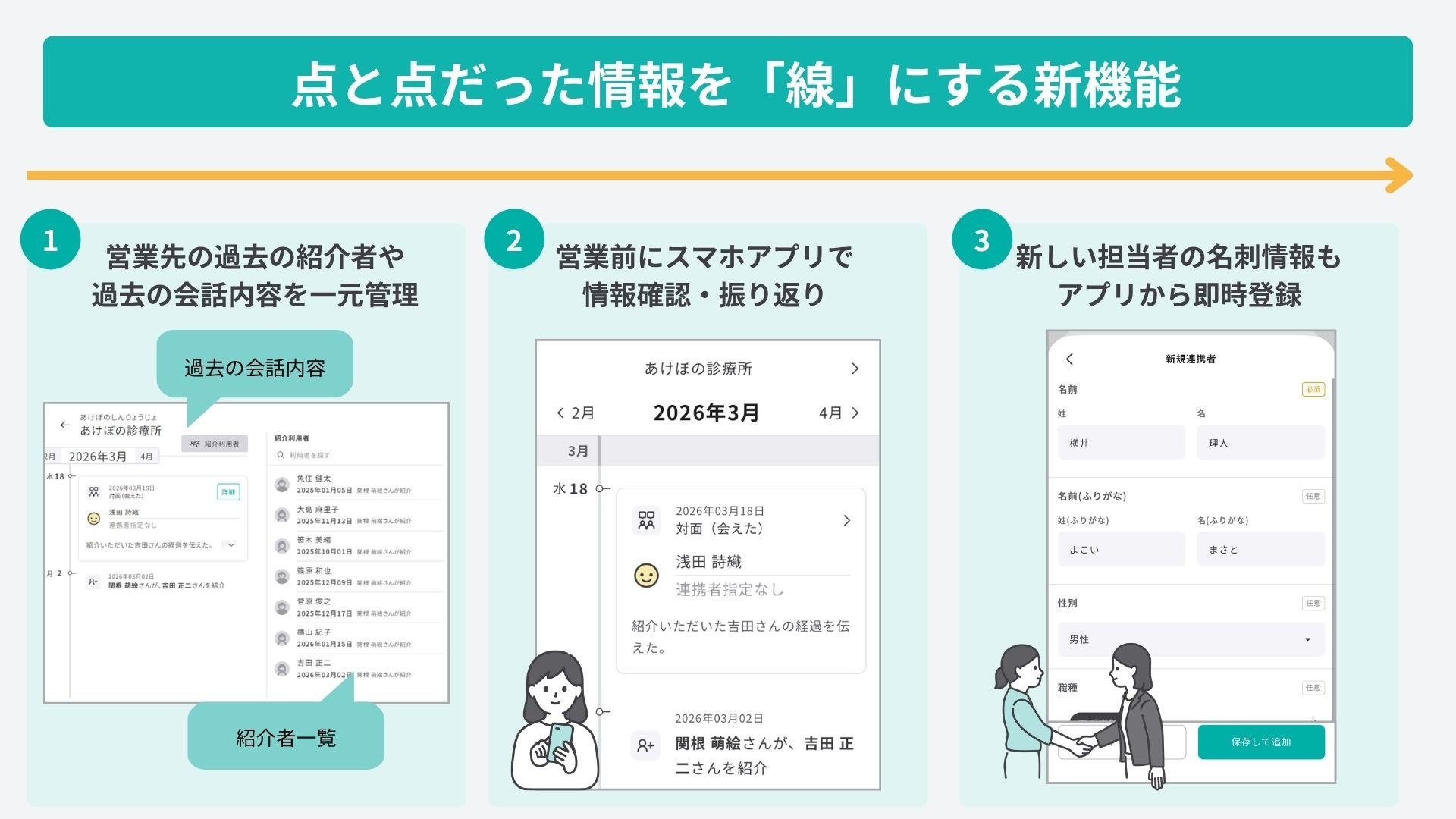 本アップデートにより、点と点だった活動記録が線に繋がり、「誰に・何を話すべきか」を踏まえた質の高いコミュニケーションを誰でも簡単に実践できるようになります。