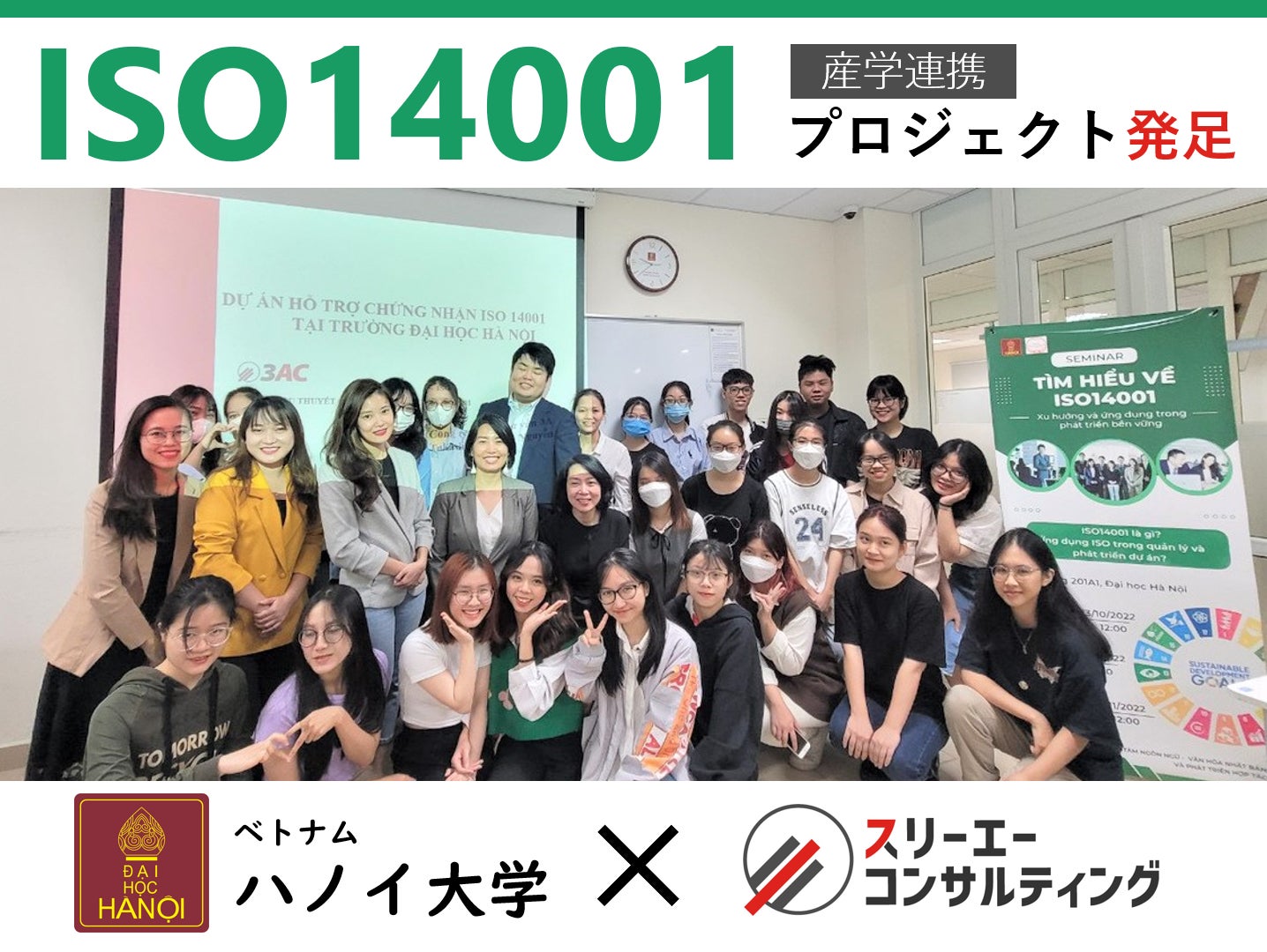 ISO9001・ISO14001・ISO27001・プライバシーマークの取得および運用コンサルティングを行う株式会社スリーエーコンサルティング(本社:大阪府大阪市、代表取締役社長:竹嶋 寛人)は、ベトナムのハノイ大学で環境マネジメントシステムの国際規格であるISO14001の認証取得を進める共同プロジェクトを発足。国を超えて複数のプログラムを展開し ISO14001を取得することで、国際的に問題となっている環境問題に対して今できることを学ぶ機会とし、環境活動への貢献を目指します。さらに、このプロジェクトが双方にとって有益な「産学連携」となることを目指します。