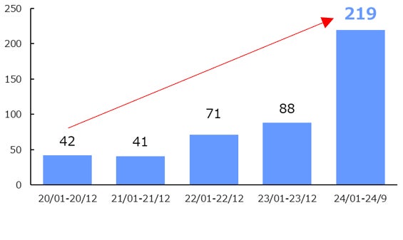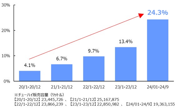 ※5:出典「日経POS情報 日経収集店舗 チューハイ分類のうち商品名に「無糖」を含むもの(全国 年次 2020年~2024年)」