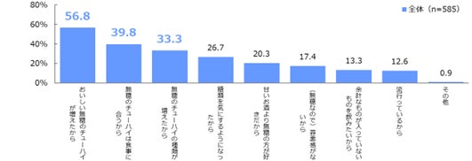その理由は「スッキリしていて飲みやすい」「さっぱりしたい」といった味に関する意見だけでなく、「罪悪感が少ない」といった無糖であることを支持する意見や「二杯目からは食事と共に楽しむので」といった食事との相性の良さに関する意見が挙がりました。
