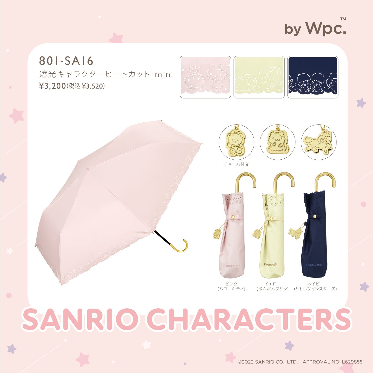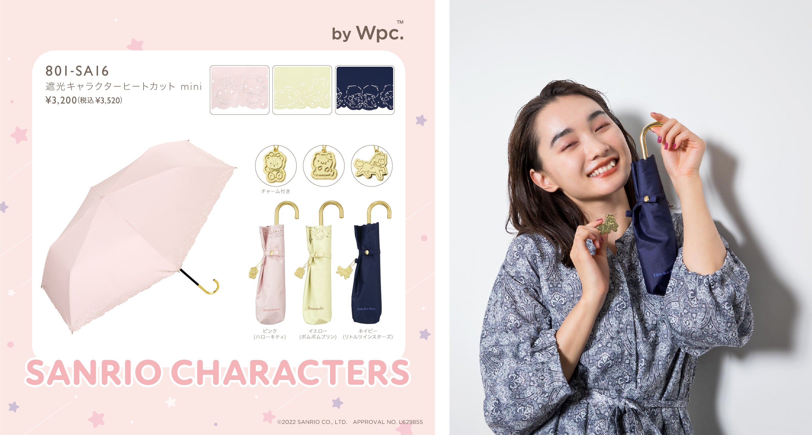 SANRIO CHARACTERS×Wpc. キュートなお顔が可愛いポーチ型やキャラクターをヒートカットで表現した完全遮光100%日傘が登場