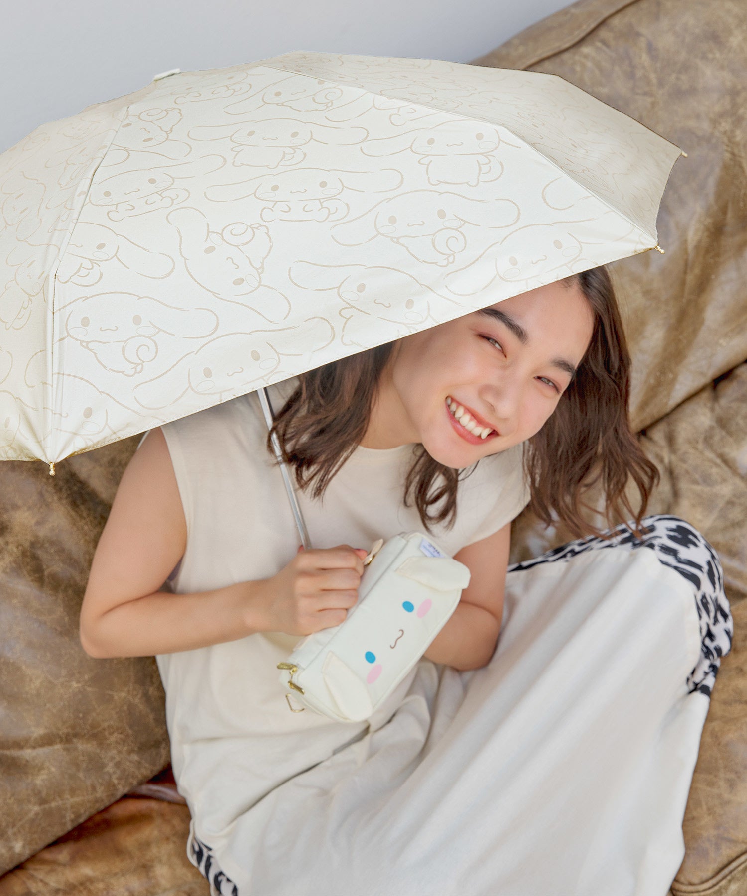 シナモロール、マイメロディ、ポムポムプリンのキュートなお顔がポーチに!立体的な可愛いお耳もポイント。傘はトーン配色なので普段使いしやすいデザインです。