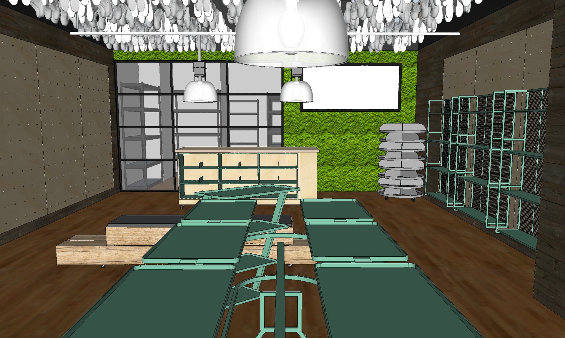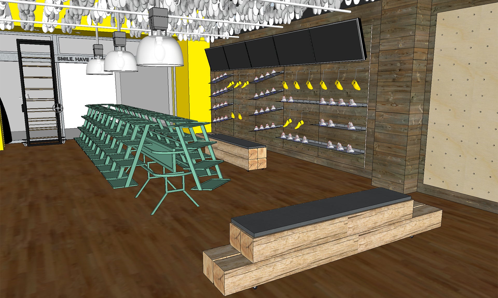 創業モデルである水陸両用サンダル『NEWPORT(ニューポート)』と共に誕生した、「天井のないところすべて」をアウトドアと定義し、シティとアウトドアをつなぐ「ハイブリッド・フットウェア」を展開するKEEN。ストリートカルチャーの聖地である原宿と、東京を象徴し、渋谷カルチャーともいうべき独自のカルチャーを世界に発信する渋谷をクロスオーバーする明治通りにグランドオープンし、そのブランドの世界観を具現化する「KEEN GARAGE HARAJUKU(キーン ガラージ ハラジュク)」のコンセプトは、ガレージ&ファクトリー。エントランスには、旧店舗で使用していたペンキ塗りのKEENロゴが引き立つ木扉をリユース。店内の中心には実際にタイ工場のシューズ製造ラインで使用していたコンベヤを店頭ディスプレイ什器に再利用し、サンプルなどのシューズを天井ディスプレイに取り入れるなど、KEEN US本社のカーペンターズによるクラフトマンシップが満載。一方で、店内はモスウォールや植物に囲まれ、ボタニカルな空間も演出します。