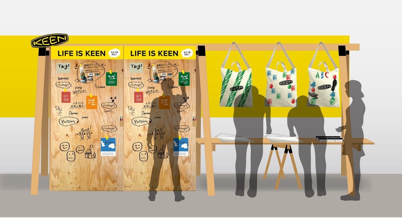KEENが展開するブランドキャンペーン「LIFE IS KEEN」について、来場者に自由なメッセージや情報交換いただく参加型メッセージボード。みんなで自由にメッセージや情報を交換しよう!