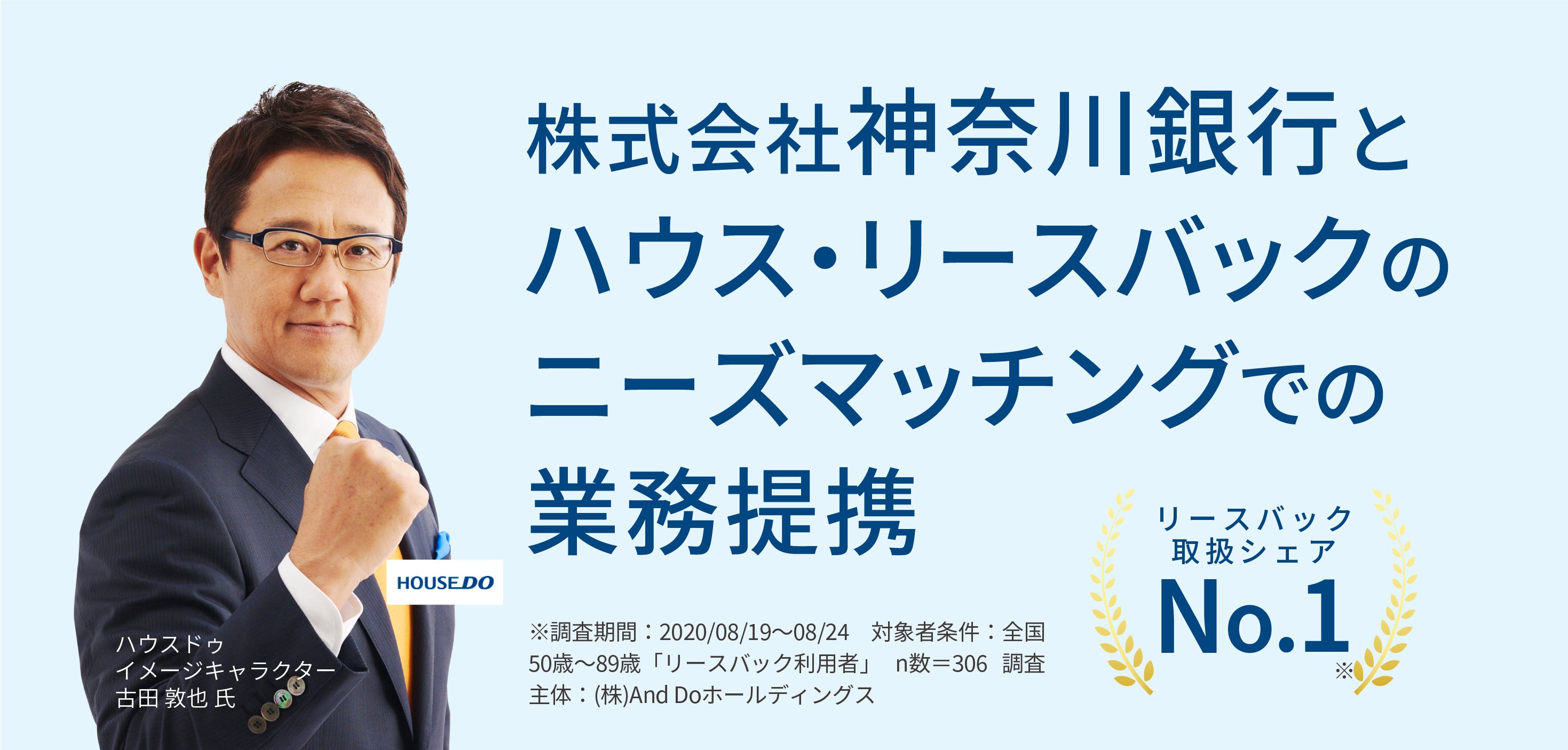 ハウスドゥブランドで不動産事業を全国展開する株式会社And Doホールディングス(本社:東京都千代田区、代表取締役社長 CEO:安藤正弘、以下:当社)は、株式会社神奈川銀行(本店:神奈川県横浜市、取締役頭取:近藤和明、以下:同銀行)とハウス・リースバック等のニーズを有する顧客紹介に関して、業務提携をいたしました。