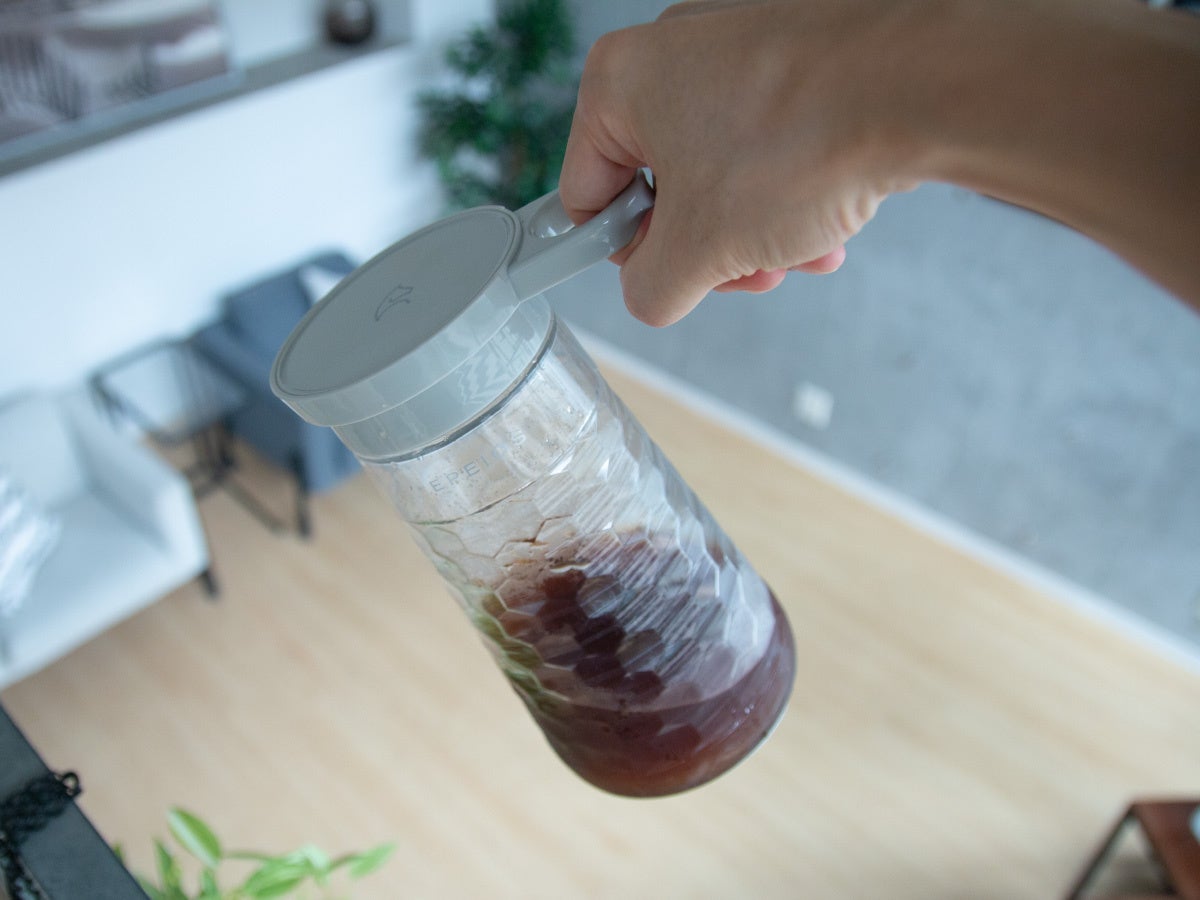 水やコーヒー粉/茶葉の量によっては1セット約15分では薄く感じる場合もあります(個人差もあります)。1回押せば、15分の抽出をスタート、更にすぐにもう1回押せば2倍の30分抽出するモー ドも新たに搭載しました。お好みのタイミングで抽出を終えることもできるので、濃いめや薄めはもちろん、紅茶やフルーツウォーターの抽出やストレーナー内の調味料に合わせた抽出も自在です。