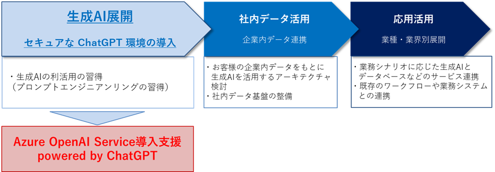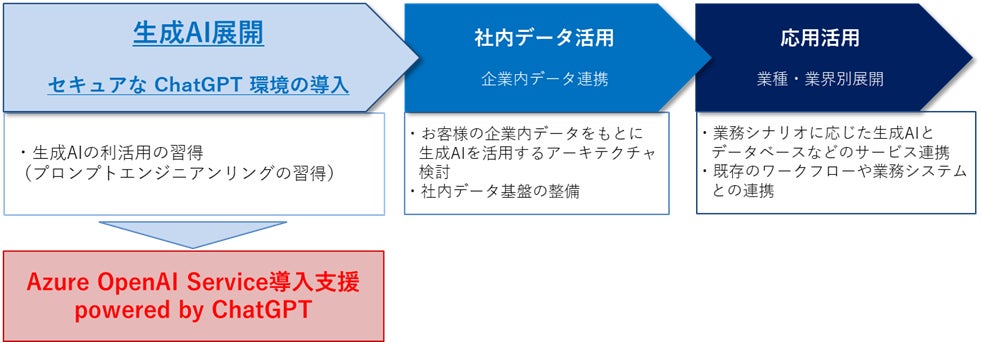 さらに、MS関連のOpenAI支援に特化した専門組織(データ & AI ソリューショングループ)を新設し、社内導入の技術とノウハウを活かした新しいサービス「Azure OpenAI Service導入支援 powered by ChatGPT」の提供を開始いたします。