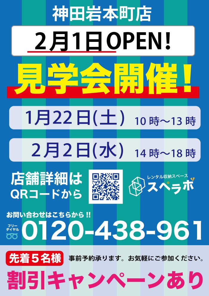 東京都心を中心に展開中のトランクルーム「スペラボ」が千代田区にOPEN!!利用者様オープン前先行見学会を1/22(土)、オープン後の見学会を2/2(水)に行わせていただきます!!