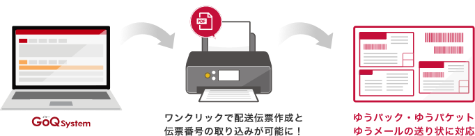 これにより、日本郵便の送り状作成と伝票番号の取り込みが「GoQSystem」からワンクリックで可能になりました。「日本郵便の送り状発行システム」を経由することなく、GoQSystemの管理画面のみで完結することができるようになります。