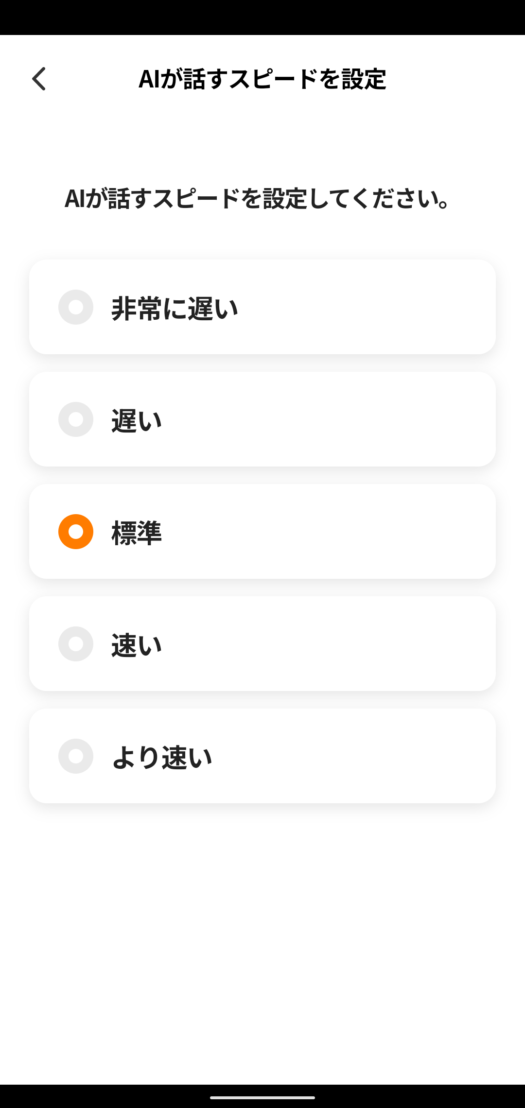 また、AIの発話スピードを「標準」に加え、「非常に遅い」「遅い」「速い」「より速い」の5段階で調整することが可能となりました。「英会話初級者でAIの発音だと速すぎて難しい」方や、「単語や文をひとつひとつしっかりと聞き取りたい」方のみならず、「速いスピードにも慣れておきたい」という方も設定変更ひとつでそれぞれの学習目的やニーズにあった学習が可能となります。