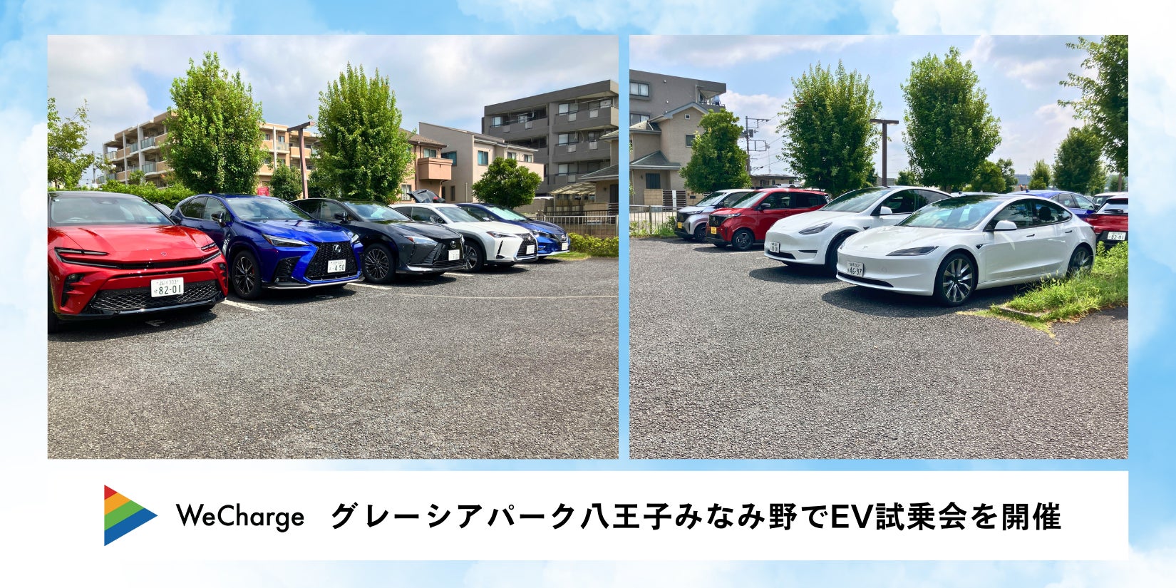 EV充電サービス「WeCharge」を展開するユビ電株式会社(本社:東京都港区、代表取締役社長:山口 典男、以下「ユビ電」)は、2024年8月3日(土)、東京都八王子市の分譲マンション「グレーシアパーク八王子みなみ野」にて、テスラ、トヨタ、日産、レクサス(50音順)の4ブランドと合同で、マンション住民向けEV試乗会を開催しました。同マンション管理組合は、全274台分の駐車スペース全てにEV充電コンセントを2025年初めに設置する予定で、EV充電サービスWeChargeが採用されます。