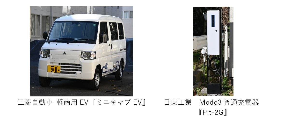 今回の実証実験では、日東工業のMode3普通充電器『Pit-2G』から送信される充電電流と、三菱自動車の軽商用EV『ミニキャブEV』(以下、ミニキャブEV)等からコネクティッド技術(以下コネクティッドシステム)を用いて送信される充電電流をユアスタンドが構築したシステムで連携し、東京大学のシステムで2つのデータを照合する仕組みを各者共同で構築しました。