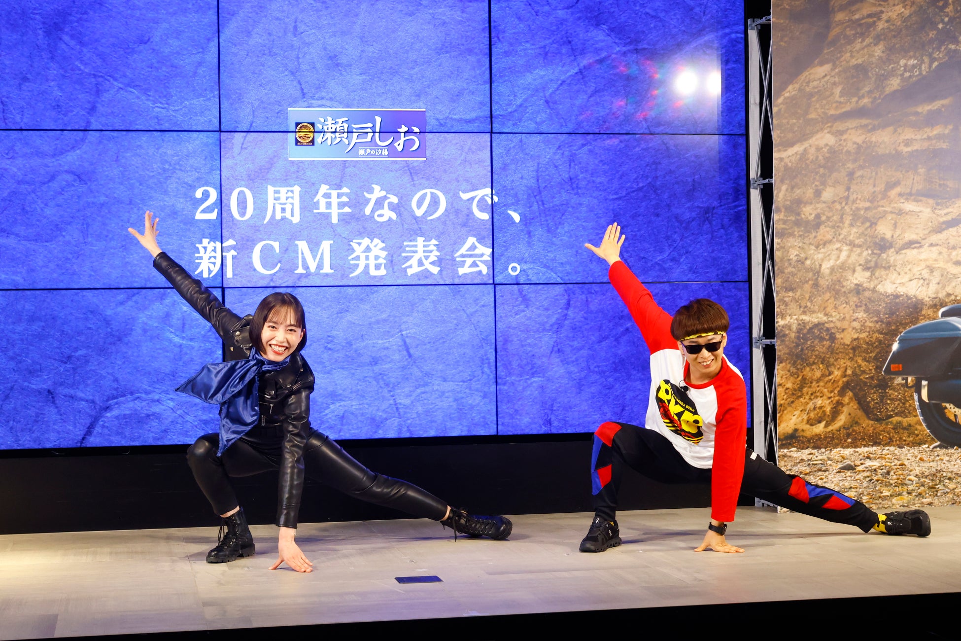 イベントの司会進行を務めることになった、バイク川崎バイクさんが本発表会限定で「ベイカ栗山ベイカ」に改名するという驚きの発表でイベントが開幕。イベント冒頭では、2025年4月1日(火)付けで栗山米菓 代表取締役社長に就任した栗山大河が登壇し、主催者挨拶を行いました。その後、新CMに出演した井桁弘恵さんが、CM内で演じた「瀬戸しお仮面」の衣装で登場。ベイカ栗山ベイカ(BKB)さんとのトークセッションが行われ、瀬戸しおの好きなところや、熱狂的なファンの存在やその人気の秘訣など、瀬戸しおが長く愛されている秘訣についてお話をいただきました。