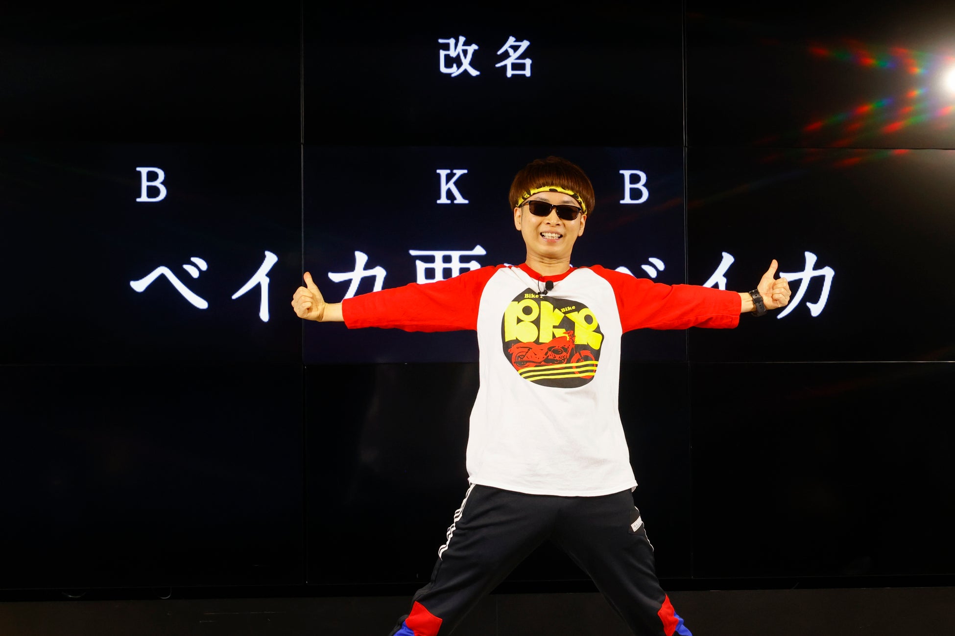 「私『バイク川崎バイク』は・・・本発表会限定で『ベイカ栗山ベイカ』に改名致します!」と高らかに発表。「ばっちり 記事にして バズらせて下さい!BKB、ヒィーア!」と来場者に対し、ノリノリで呼びかけを行いました。