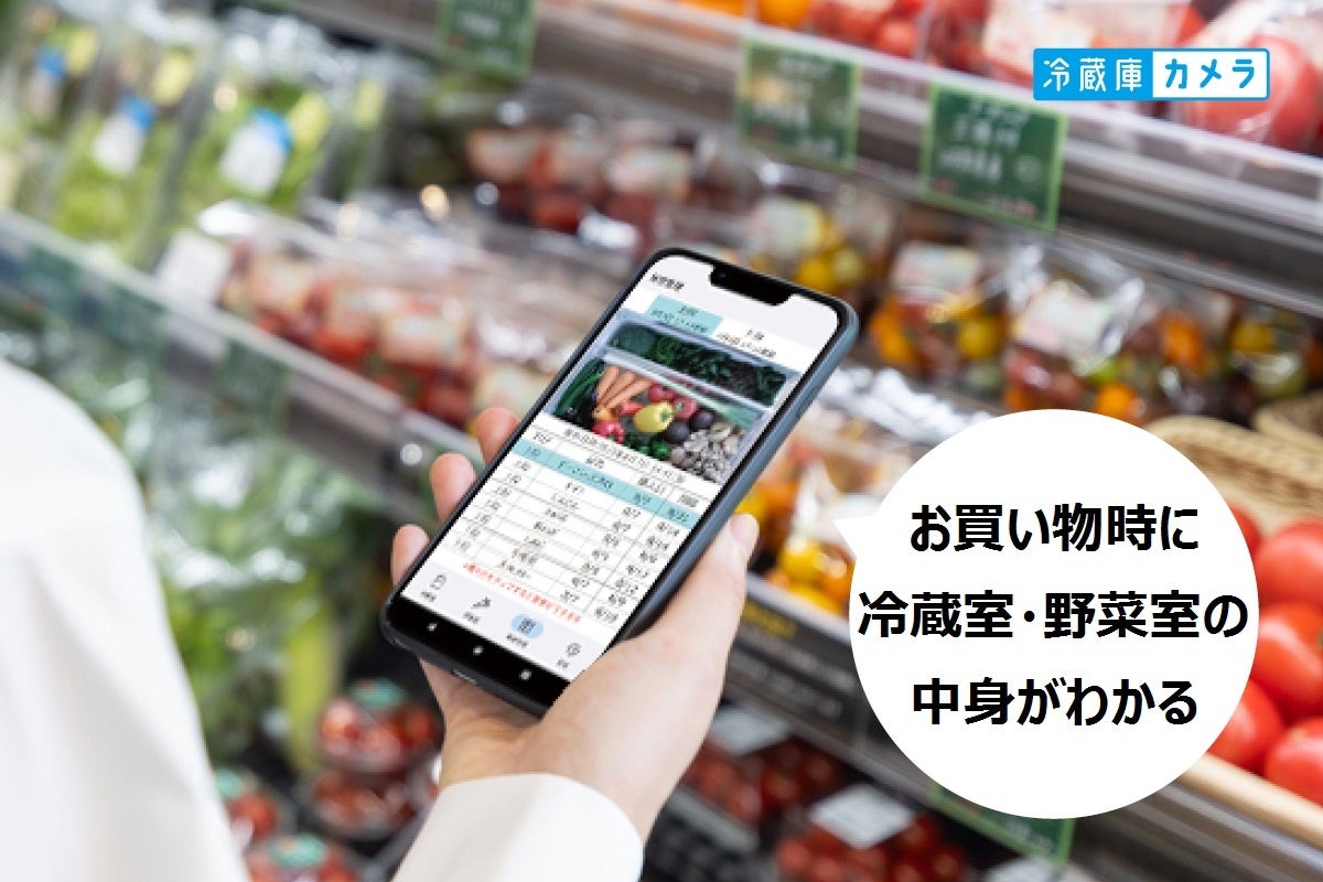 本サービスにより、スマホを見て、冷蔵庫の中身を確認しながらお買い物ができるので、同じものを買ってしまったり、買い忘れてしまう心配が軽減されます。特に鮮度管理が難しい野菜室には、野菜の消費期限の目安を教えてくれる機能がついているので、フードロス防止も期待できます。※1